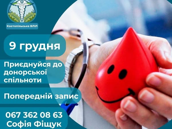 Запрошуємо долучитися до донації крові Вже 9 грудня